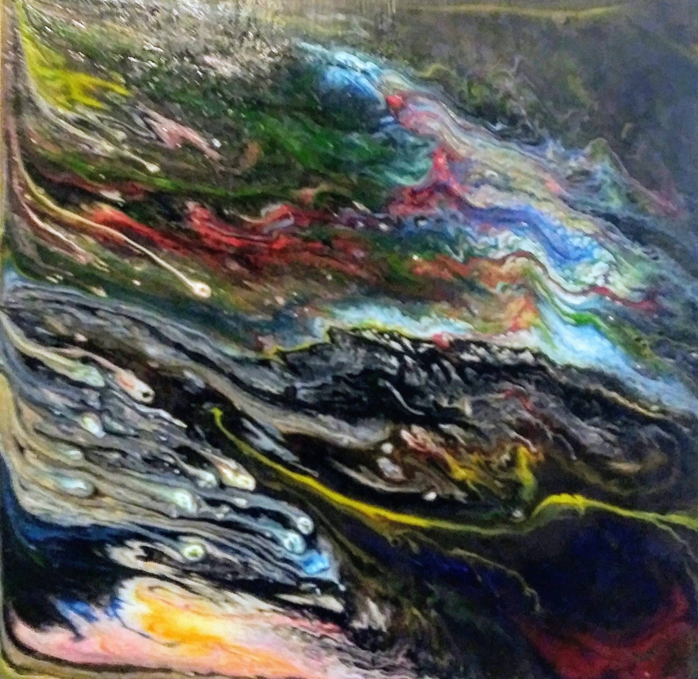Acrylic on ply wood. Finished with clear resin. 18x18.2019