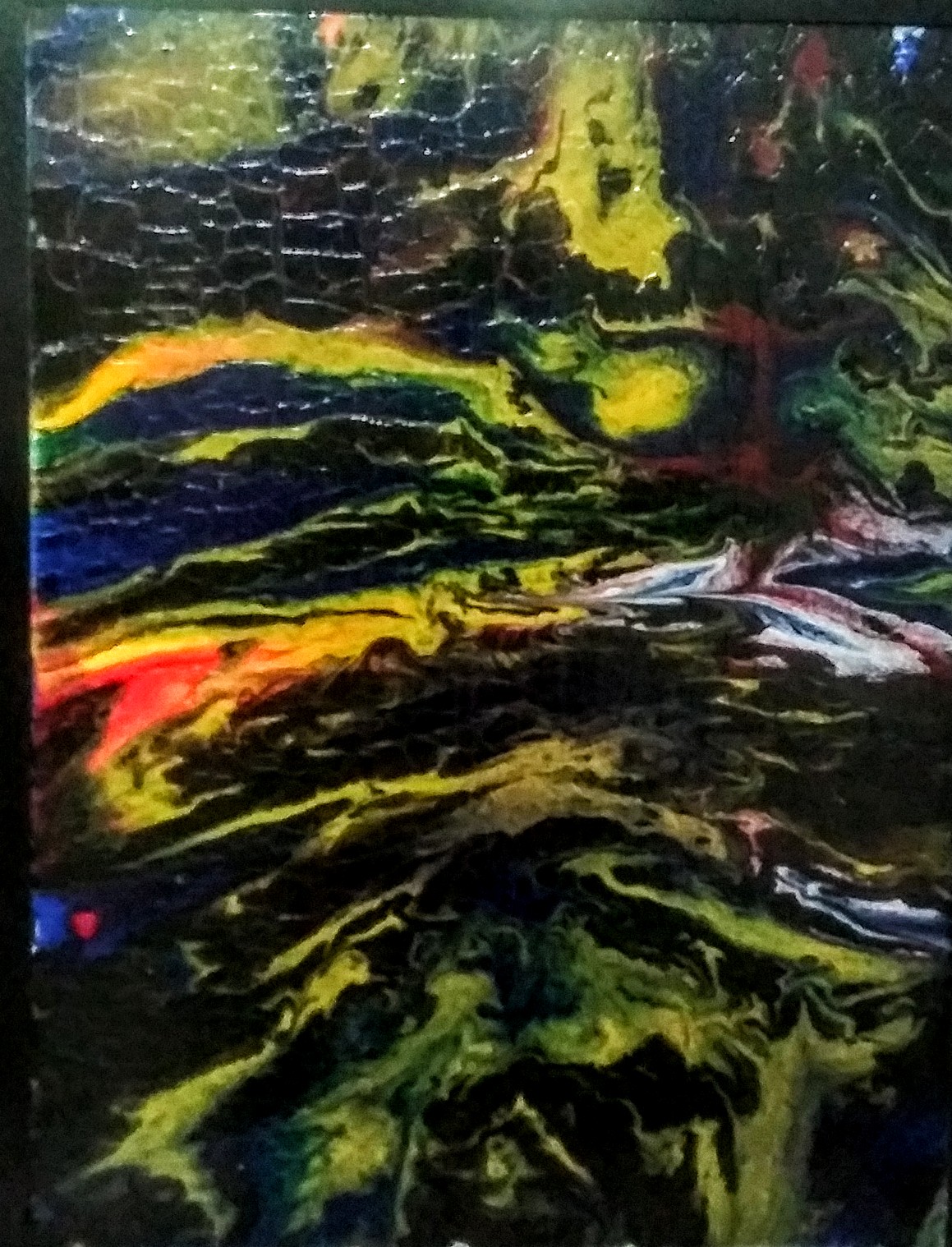 Acrylic pour painting. 24"x18". Acrylic on canvas. Painting comes in black frame. FML2019.