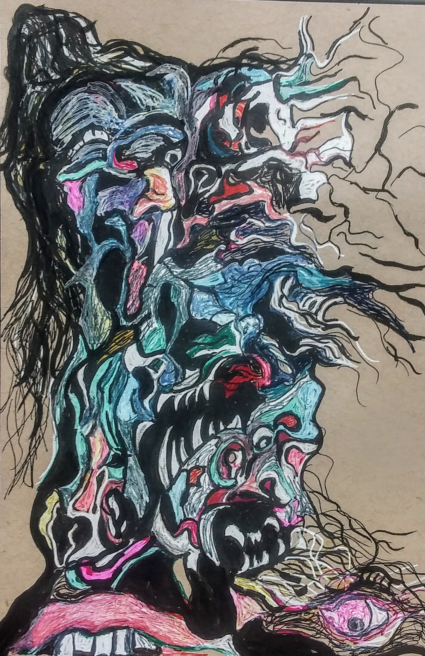 Pen on 5.5x8.5 tan drawing paper. FML2019.