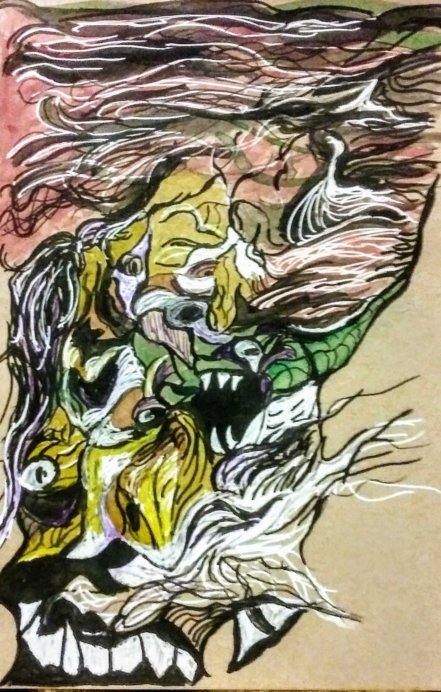 Watercolor and pen on 5.5x8.5 tan drawing paper. FML2019.