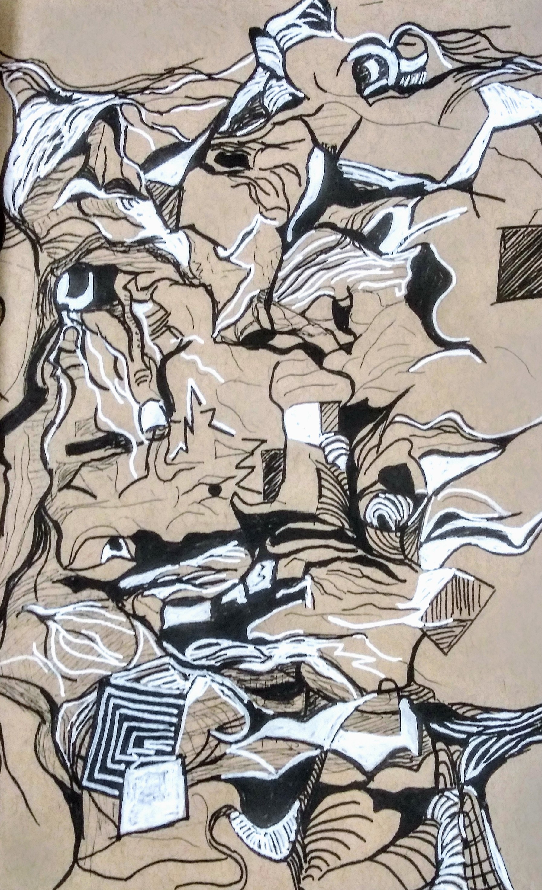 Pen on 5x8" tan drawing paper. FML2019.
